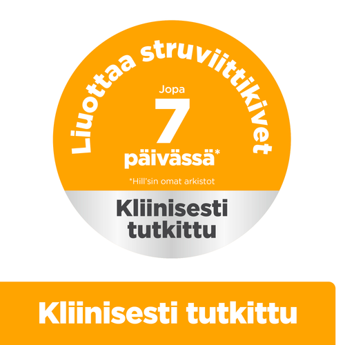 ● Liuottaa struviittikivet jo 7 päivässä (keskimäärin 27 päivässä)