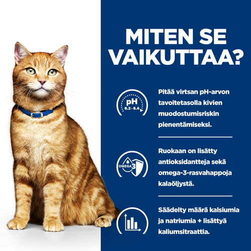 ● Vähentää struviitti- ja kalsiumoksalaattikivien uusiutumisen todennäköisyyttä